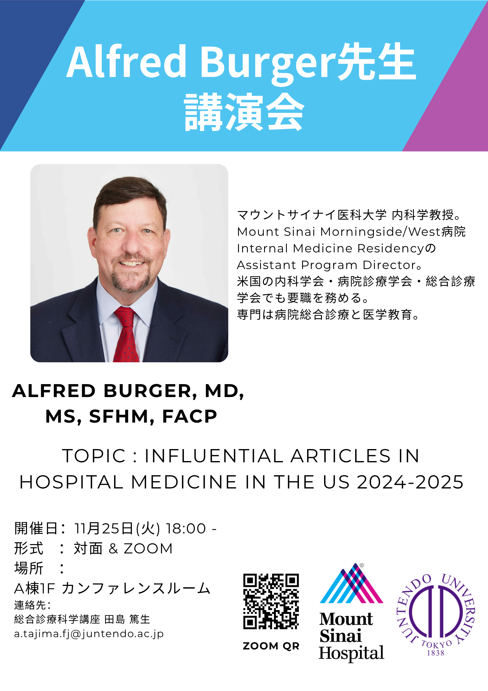 | 問合せ先 | 順天堂大学医学部総合診療科 鈴木麻衣 JUNGMSYM@googlegroups.com |